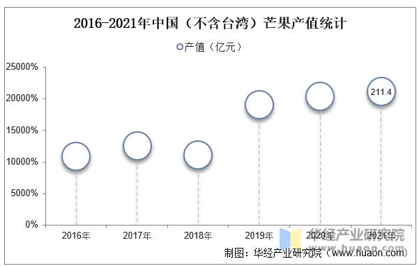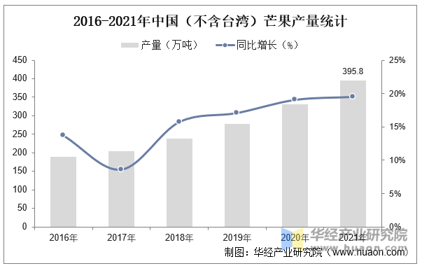 據(jù)農(nóng)業(yè)農(nóng)村部農(nóng)墾局?jǐn)?shù)據(jù)顯示,2021年中國(guó)芒果園面積為561。9萬(wàn)畝,同比增加9。09%,取2016年的344。7萬(wàn)畝比擬,中國(guó)芒果園面積增加了217。2萬(wàn)畝。2016年至2021年,中國(guó)芒果園面積同比增加率從峰值波動(dòng)下降至9。09%。